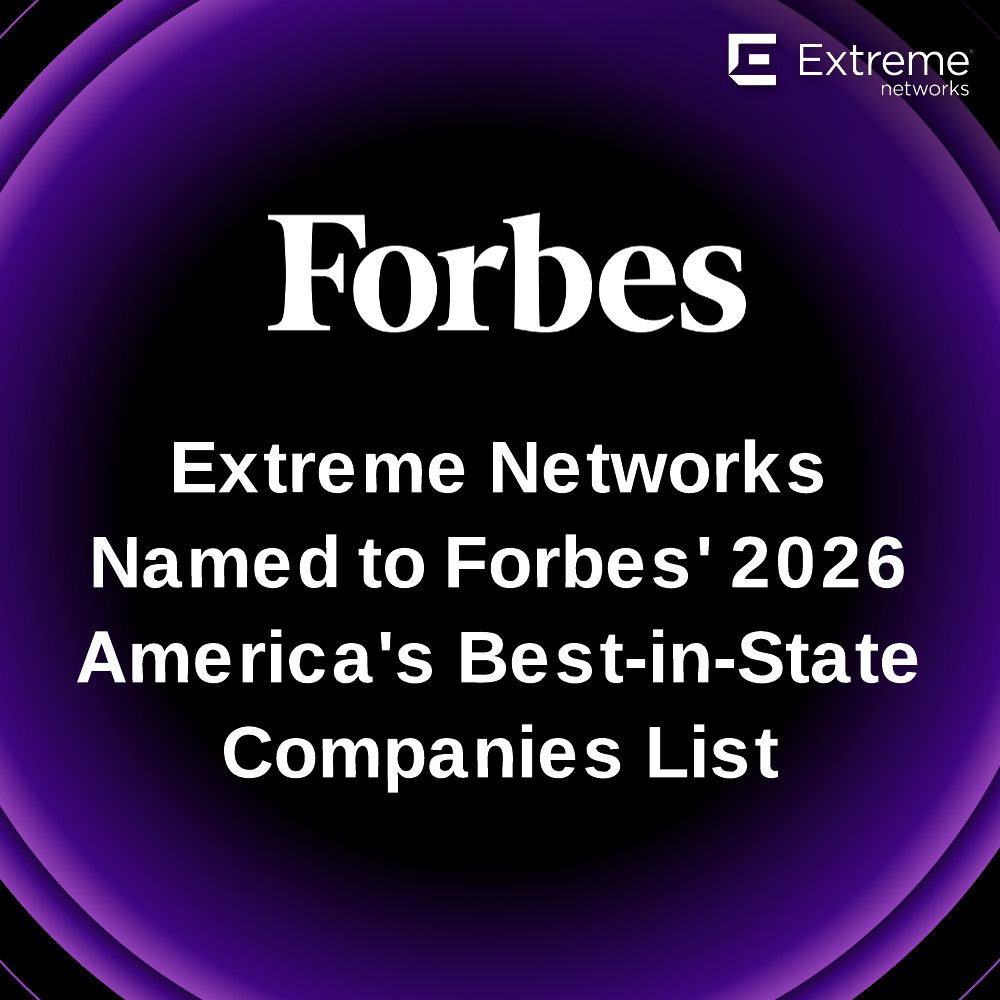 Forbes recognized Extreme Networks on its 2026 America's Best-in-State Companies list, highlighting organizations that excel at customer experience, employee satisfaction, and sustainable growth.