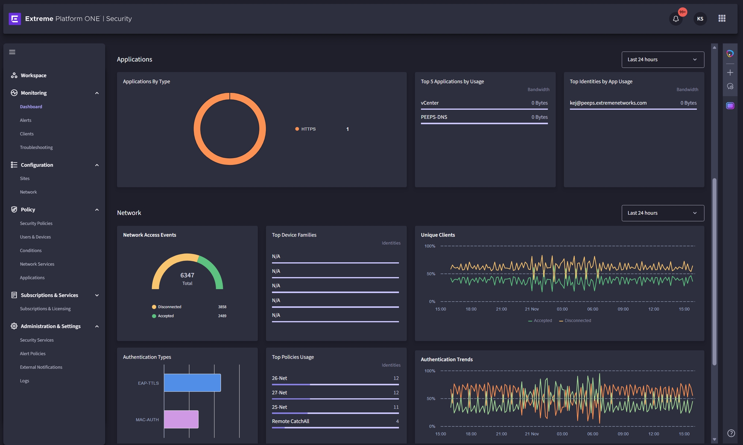 With zero trust security built into Extreme Platform ONE, the first all-in-one network platform, IT teams are empowered to enforce policies and gain operational visibility across the entire network.